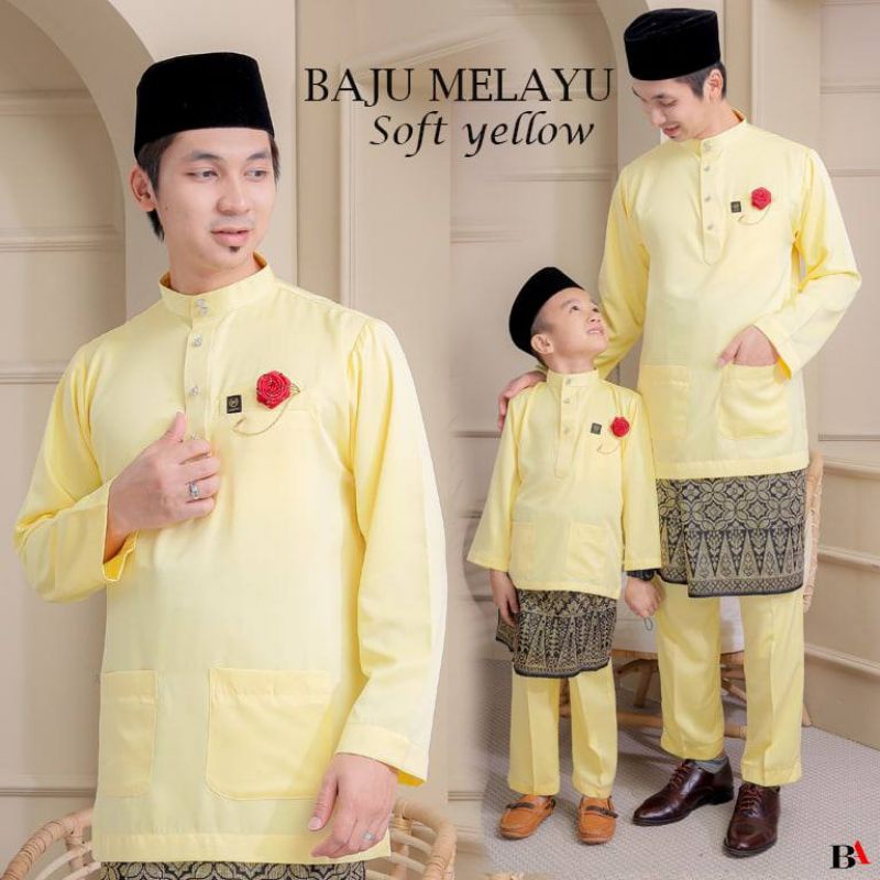 Baju Melayu Moden Kuning Lembut Kuning Cair Soft Yellow Baby Yellow Dewasa Ayah Anak Bapa Budak Kanak Kanak Pearlskin Shopee Malaysia